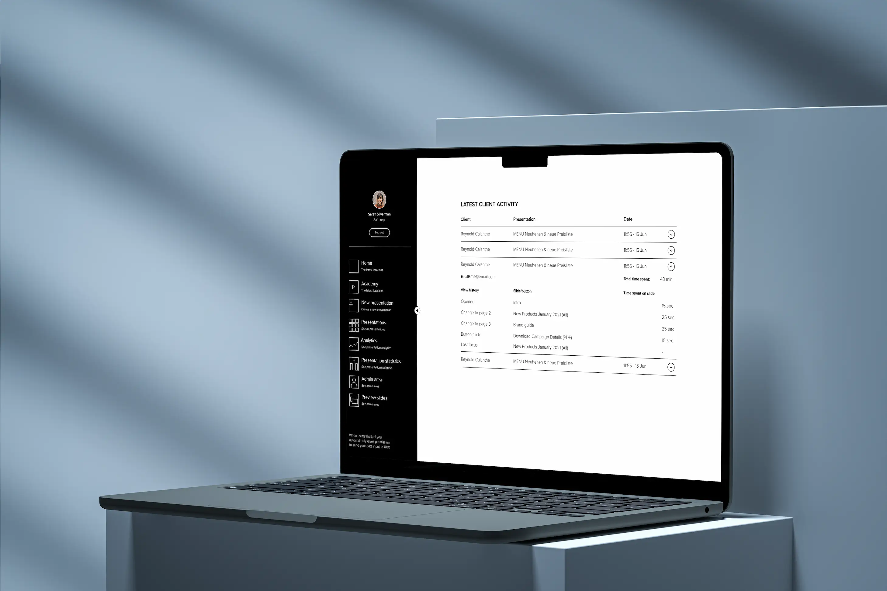 X1 generates sales presentations in a fully responsive website experience. By sharing a URL with recipients, all interactions are completely trackable. E.g. you’re able to see when a presentation is opened, shared with someone, and identify the most-viewed slides. Internally, you can monitor the performance of both sales staff and sales content. All tracking is fully GDPR compliant, both externally and internally.
